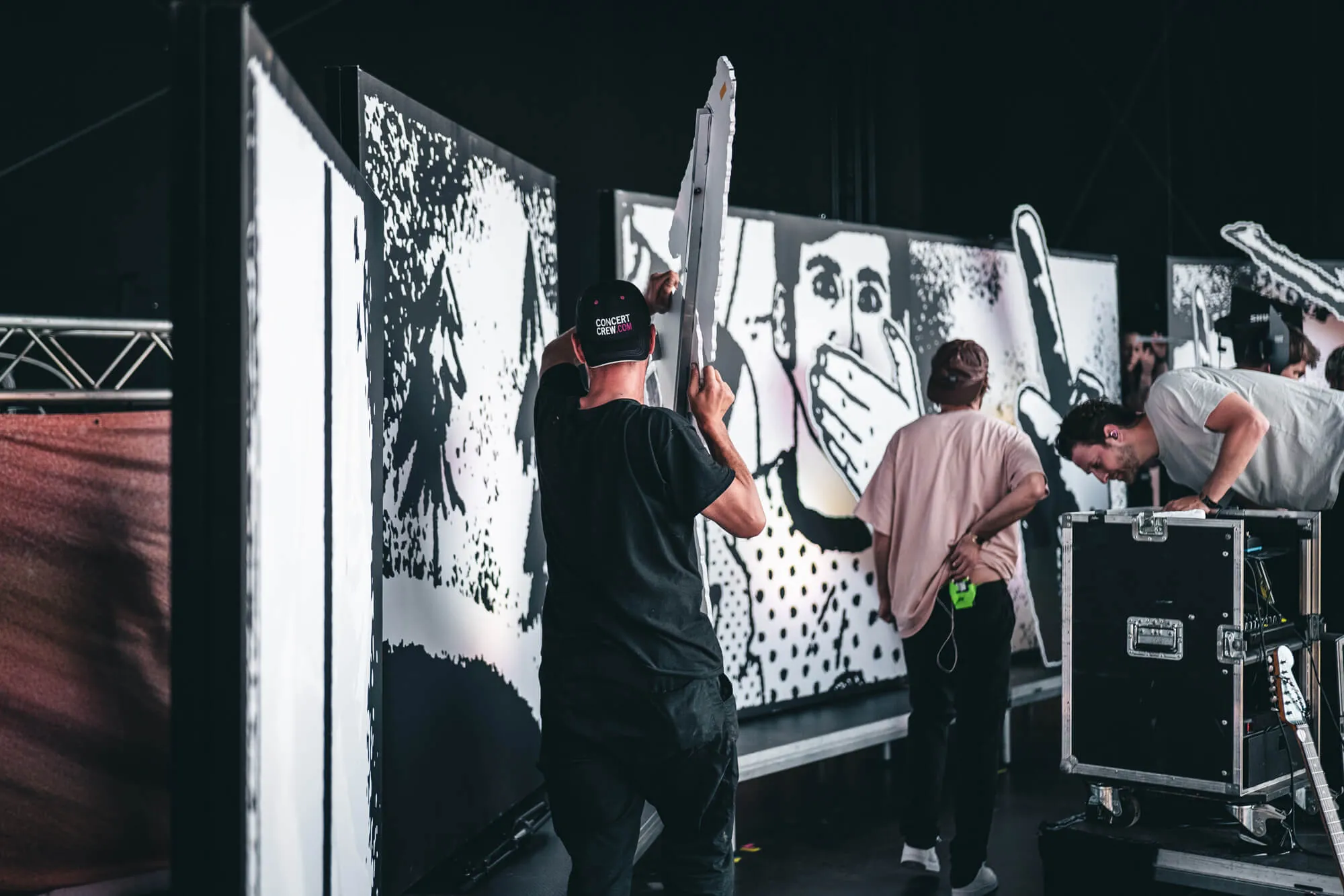 Unsere Leidenschaft ist das Detail. Jeder Backdrop entsteht im Sublimationsdruck auf B1-zertifiziertem Dekostoff — schwer entflammbar, leicht und tourtauglich.